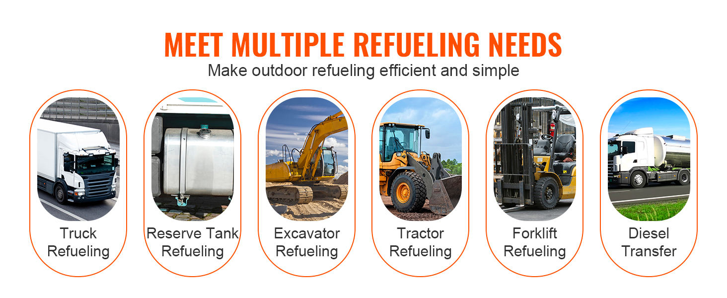 High Speed: The high-speed 3300 RPM motor delivers up to 10 GPM flow rate. Fill up your tractor's tank in a swift 43 seconds, and enjoy a 9.8 ft suction and 26.2 ft lift. Meet portable fuel transfer pump, designed for diesel, kerosene, and transformer oil. Do not use it for gasoline, machine oil, or other liquids.